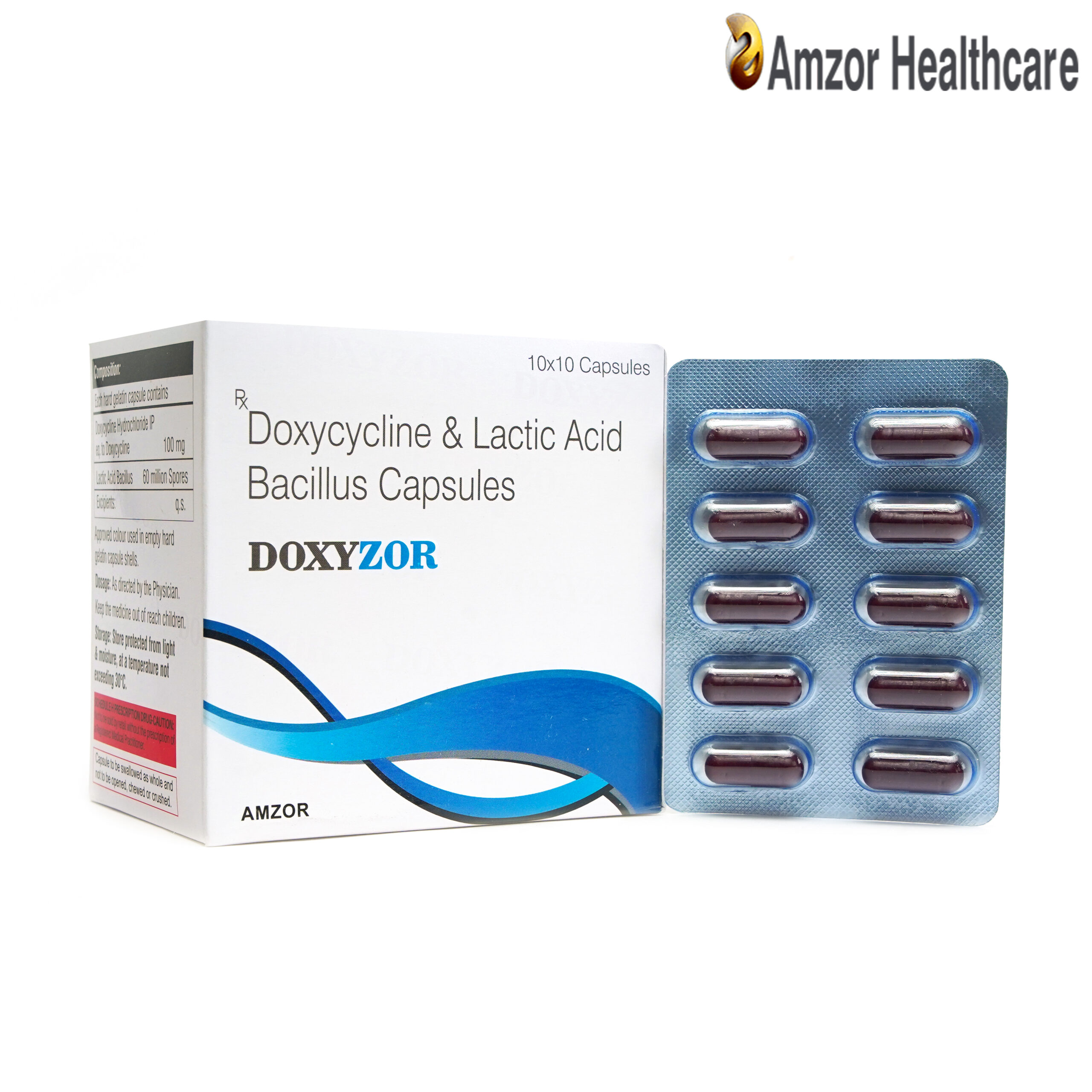 DOXYZOR combines doxycycline 100 mg with Lactic Acid Bacillus to target bacterial infections while supporting gut health. Effective, well-tolerated capsules reduce recurrence and antibiotic-associated diarrhea when taken as prescribed properly.